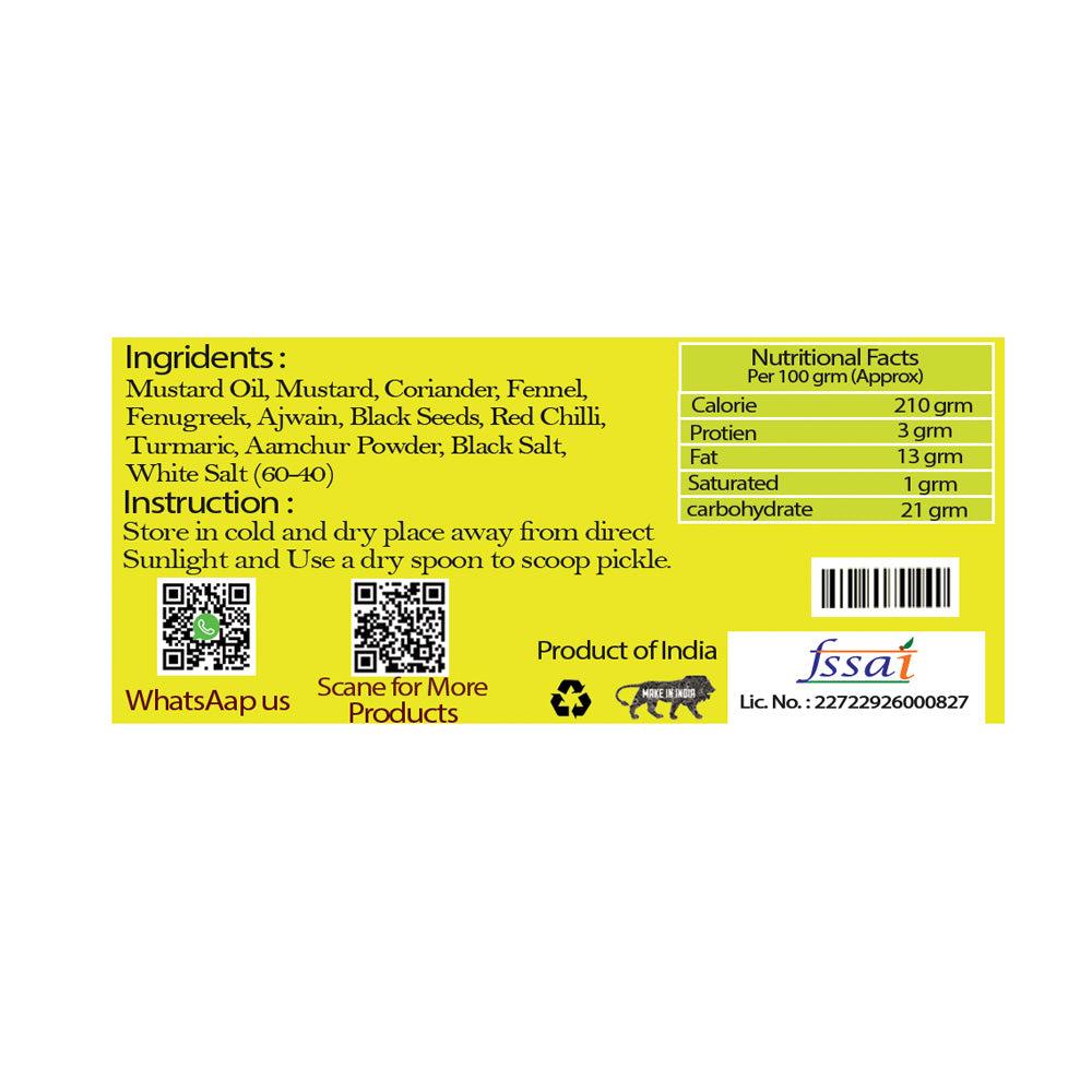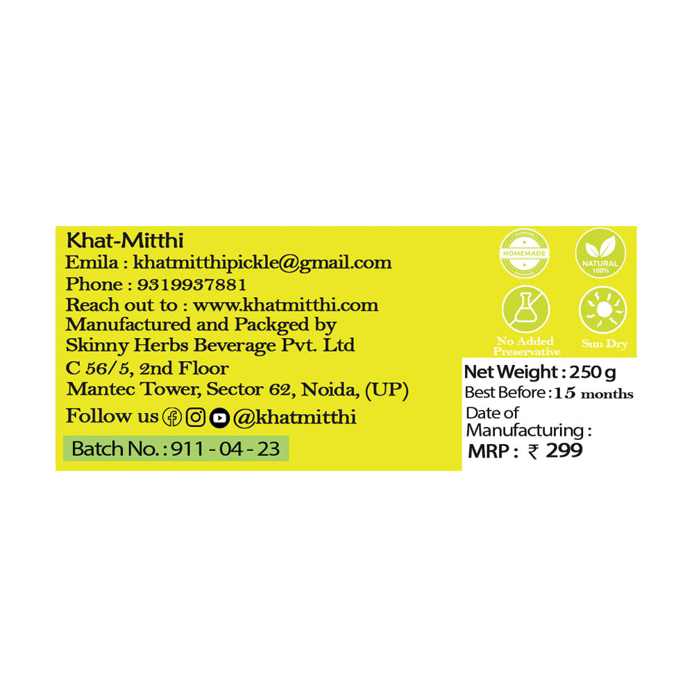 Tangy, Chatpata, and a strong Aroma. Made with comparatively less oil.