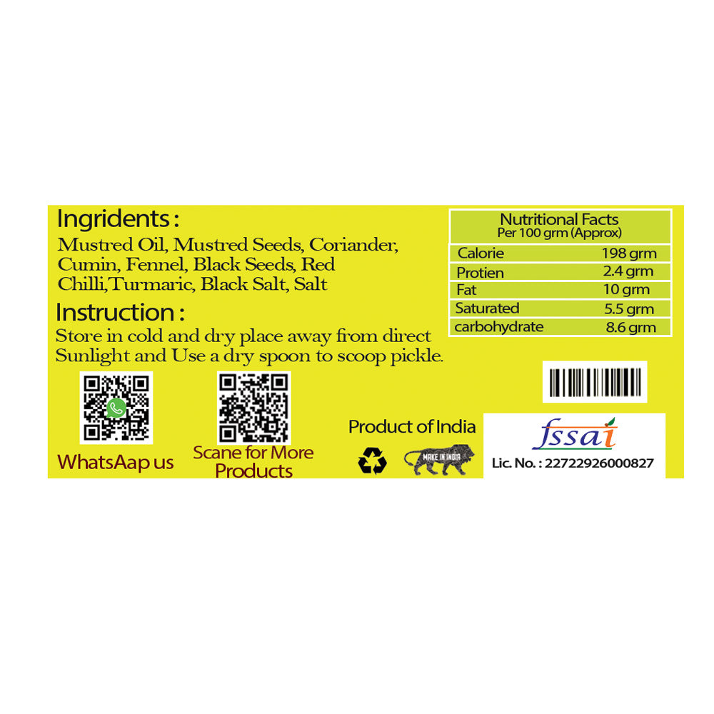 Enjoy this tangy, spicy, sour pickle with your favorite parathas, or simply Dal Chawal |