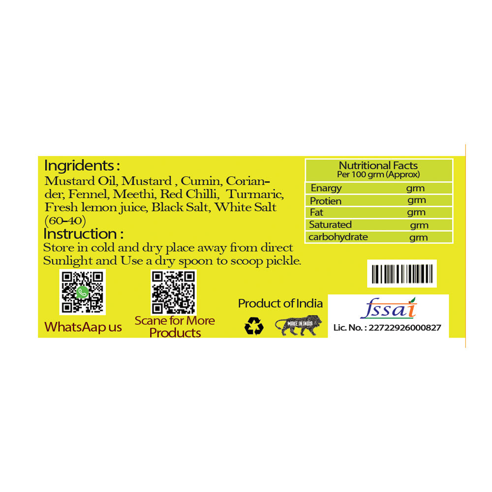 A bold trio of ginger, garlic, and green chilli come together in this flavorful blend. Zesty, spicy, and full of depth – this pickle is a punch of flavor in every bite.